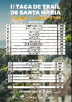 A II Taça de Trail de Santa Maria contou com total de 254 participantes (143 masculinos e 111 femininos), entre os quais 164 atletas na categoria Competição (117 masculinos e 47 femininos), 68 participantes na categoria Lazer (9 masculinos e 59 femininos) e 22 atletas na categoria Kids (17 masculinos e 5 femininos).